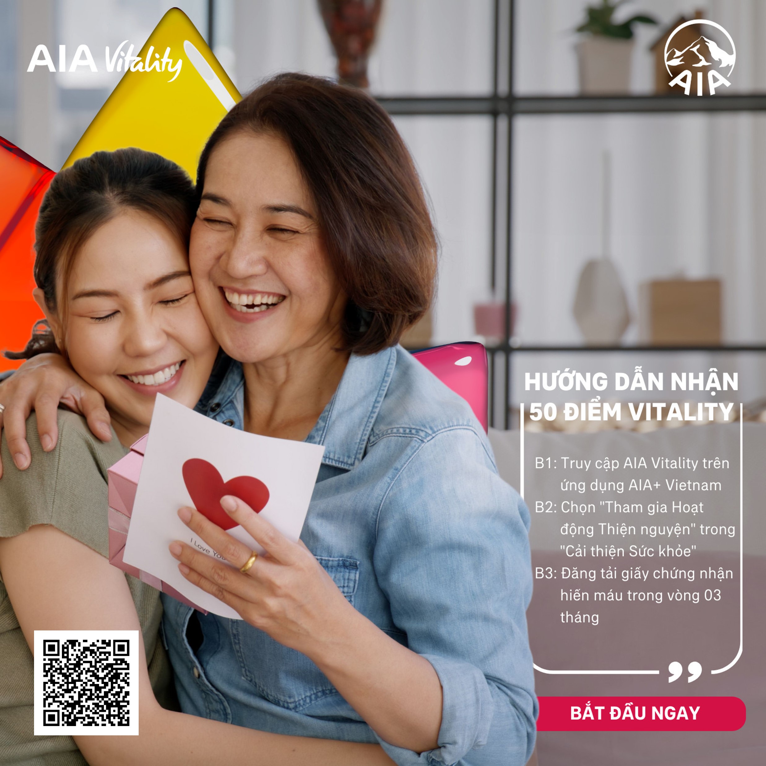 👉 Hãy để AIA Vietnam tôn vinh sự đồng hành vô hình ấy với AIA Vitality. Làm theo các bước sau đây để nhận 50 Điểm
